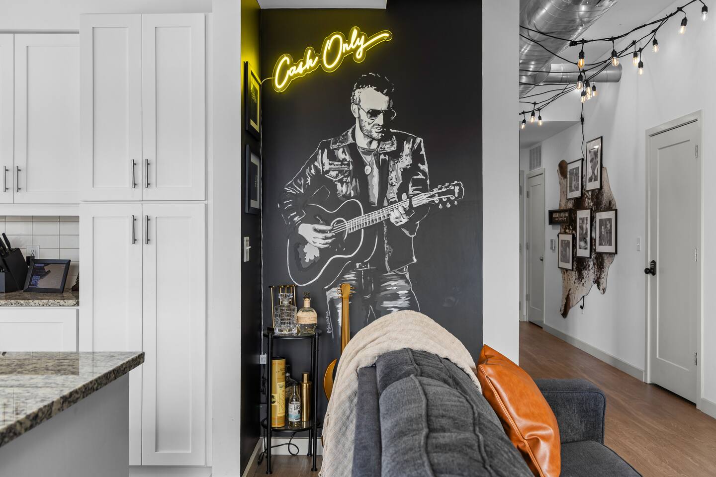 Welcome to CASH’S Corner — a stylish Nashville retreat inspired by the Man in Black. Enjoy panoramic city views, curated décor, and subtle nods to Johnny Cash throughout the space. Whether you’re a fan or simply seeking a unique stay in Music City, CASH’S Corner offers a memorable, one-of-a-kind experience.